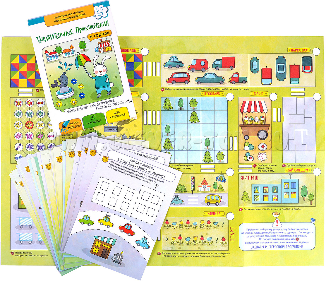 Карточки для занятий по развитию мышления "Удивительные приключения в городе"
