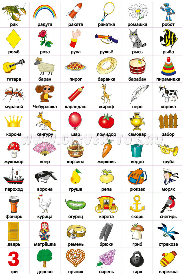 Логопедический пазл с изображениями на слова со звуками [Р] и [Р'].
