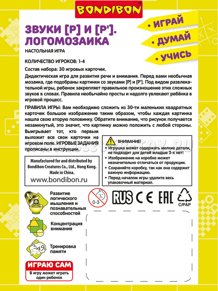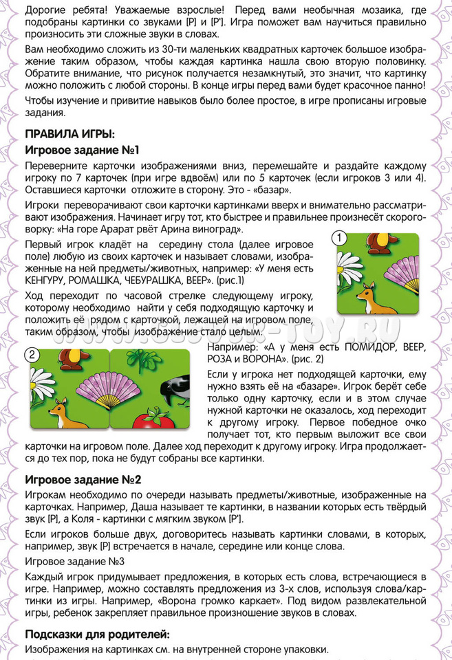 Настольная игра "Логомозаика. Звуки [Р] и [Р']" из серии "Играй Думай Учись".