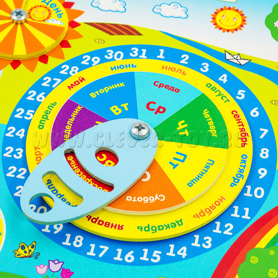 Бизиборд "Календарь природы" развивает навыки речи, пространственное мышление, логику и творчество. а яркое оформление дает простор для фантазии.
