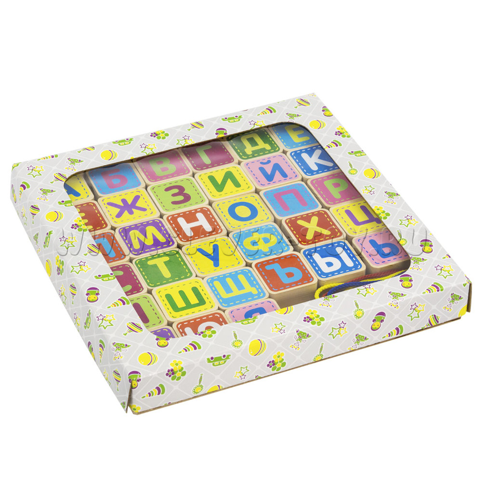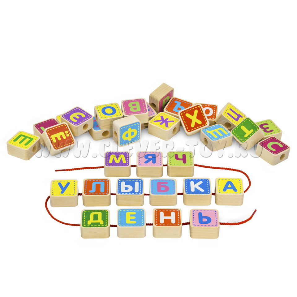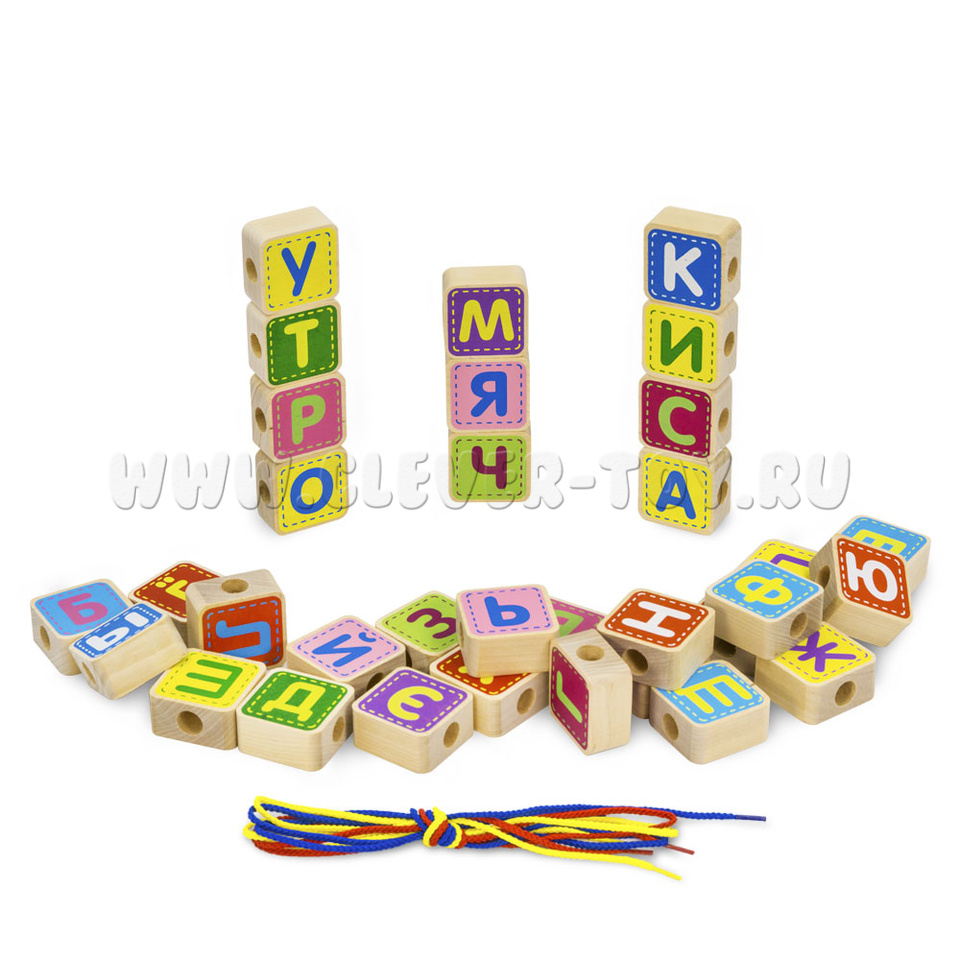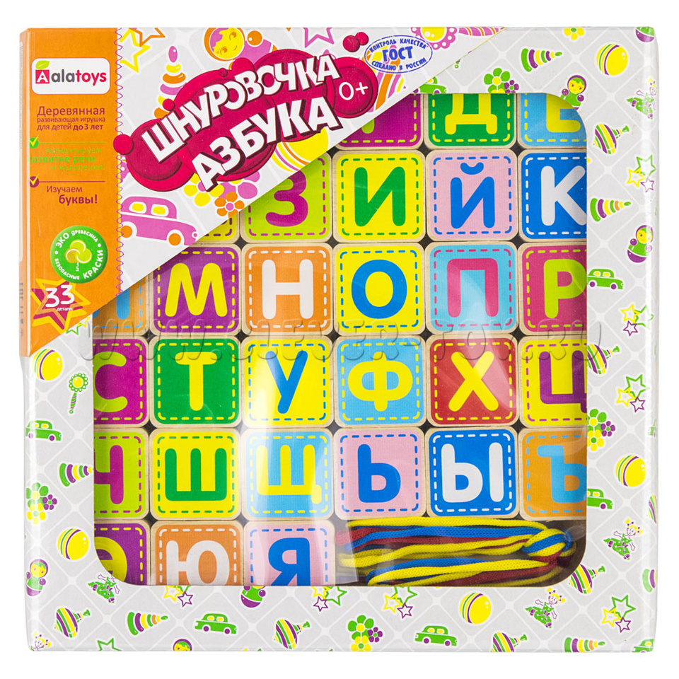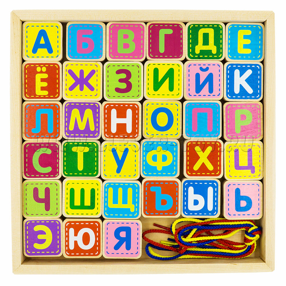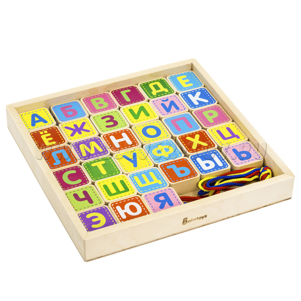 Конструктор "Шнуровка Азбука" (33 детали, 4 шнура, деревянная коробка)