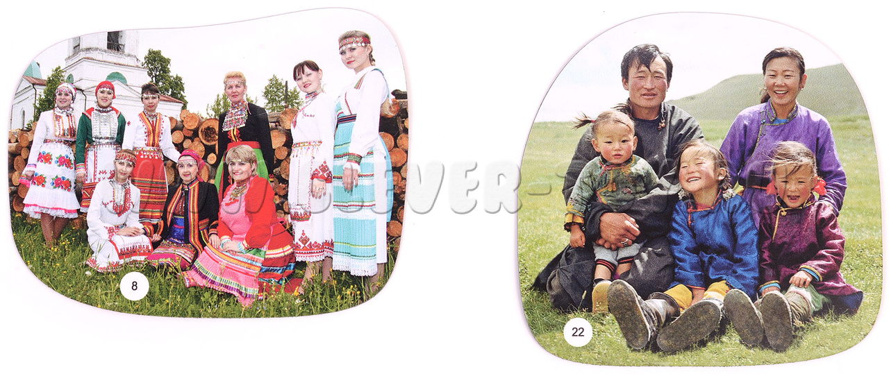 В наборе 23 магнитных карточки, которые рассказывают, о разных народах, проживающих в нашей стране.