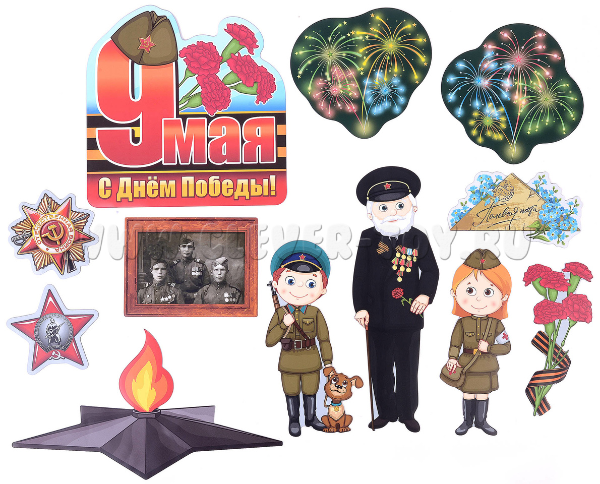 В наборе, предназначенном для украшения классной доски ко Дню Победы, всего 12 магнитных карточек.