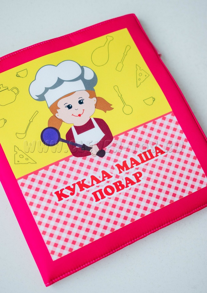 Эта папка познакомит вашего малыша с куклой Машей-поваром. В развёрнутом виде она имитирует кухню.