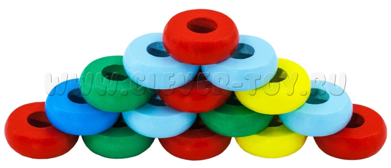 Пирамидка деревянная "Счеты" (15 колец, основание)