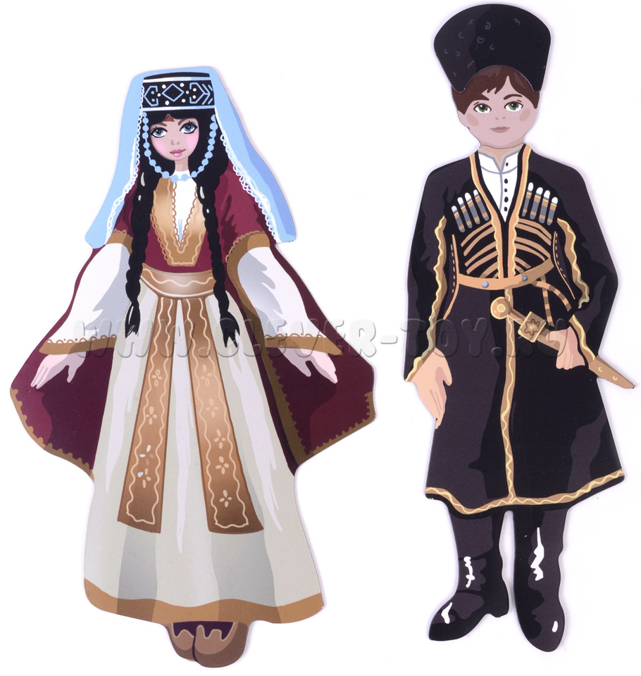 На первый взгляд, различий много. Но очень просто превратить грузина в узбека, поменяв одним движением руки магнитные карточки-костюмы. А гречанка легко станет русской девушкой, готовой пуститься в пляс с платочком в руке!