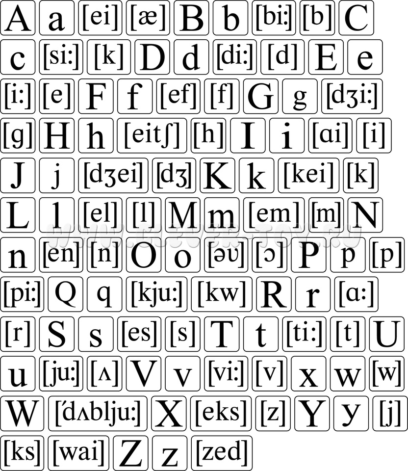 Набор магнитных карточек для изучения английского алфавита и транскрипции. Каждая карточка содержит как печатную букву, так и её транскрипцию, что помогает детям быстрее освоить произношение.