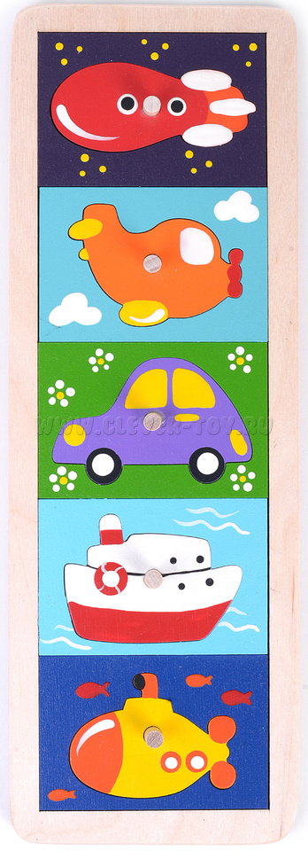 Рамка-вкладыш "Транспорт" состоит из 10 деталей, выполнена из экологически чистых материалов и окрашена безопасными красками на водной основе.