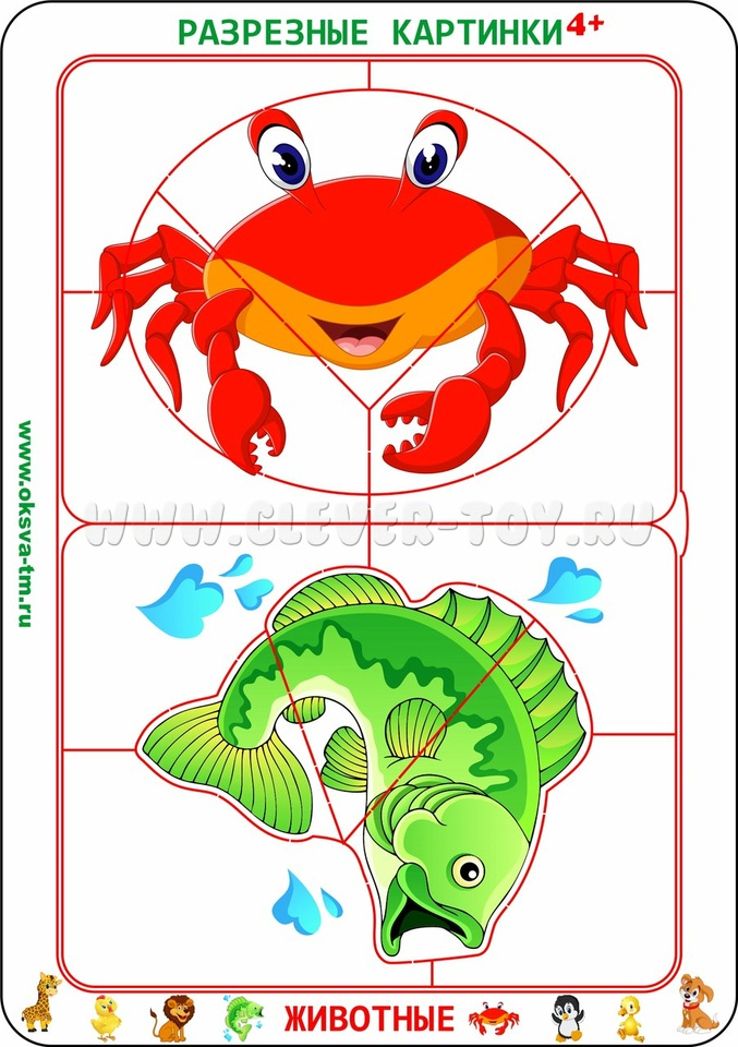 Разрезные картинки "Животные 4+"