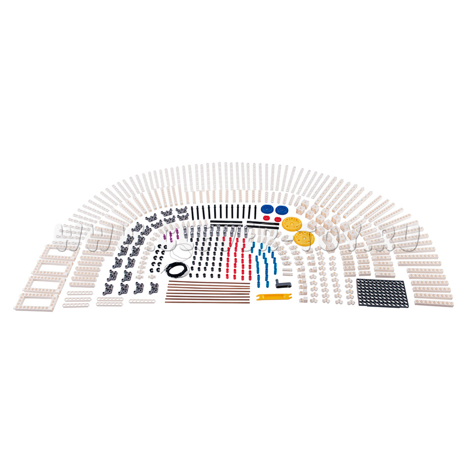 • Комплектность: Полноценный набор деталей для конструирования мостов и зданий, включая специальные архитектурные элементы, колеса, гнущиеся пластины, рамы, оси, подшипники и крепления.