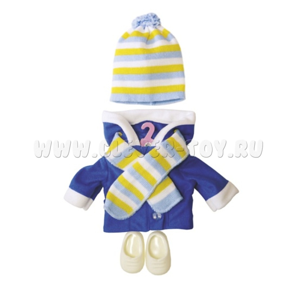• одежда (шуба, куртка, брюки, свитер, платье, носки, маечка, трусы, зимняя шапочка, рукавички, демисезонная шапочка, шарф, панама), Переодевая куклу, ребёнок развивает мелкую моторику, двигательные навыки, знакомится с разными видами застёжек: завязки, молнии, пуговицы.