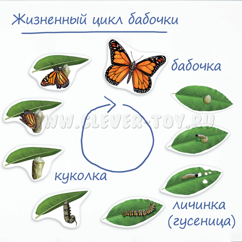 • В состав набора входят магниты  9 этапов жизненного цикла бабочки.