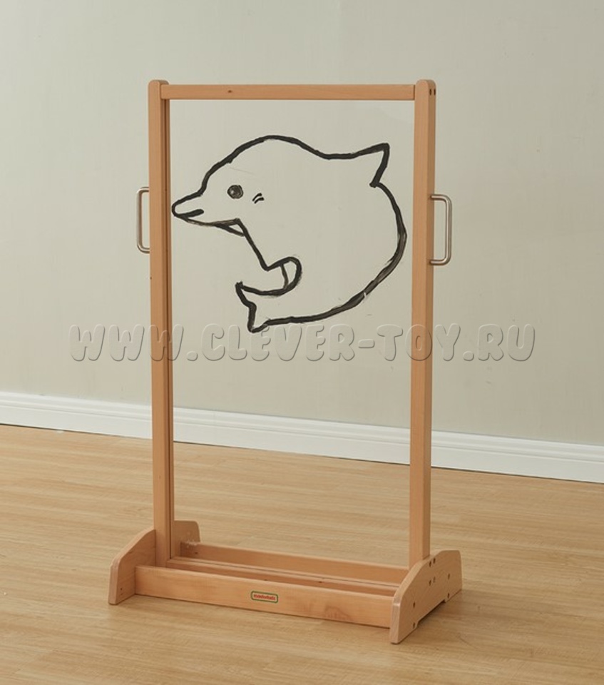 Поверхность для рисования сделана из прозрачного акрила, поэтому дети могут рисовать то, что видят сквозь него, в том числе портреты друг друга. После завершения работы рисунки можно просто стереть, чтобы использовать мольберт в следующий раз. Размеры мольберта позволяют рисовать стоя, создавая большие рисунки.