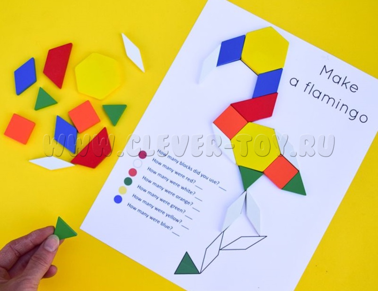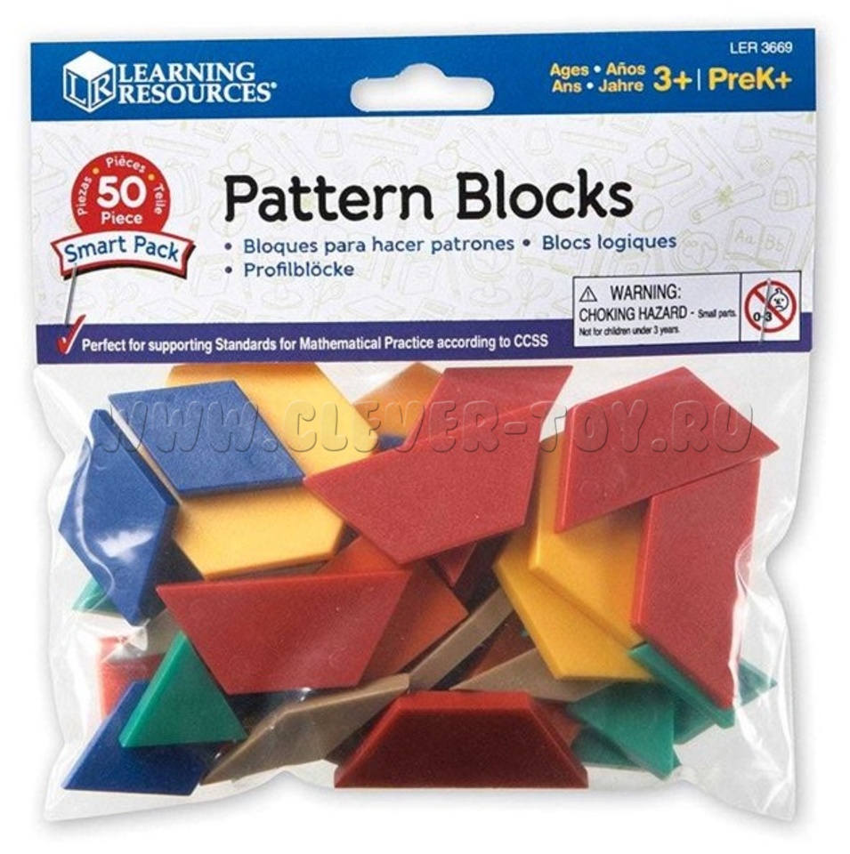 50 пластиковых плиток 6 форм и 6 цветов для решения задач, изучения симметрии, линейного измерения и измерения площади, дробей.