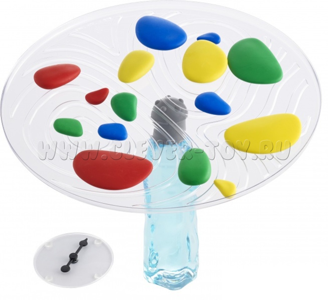 В набор входят: 24 камешка (в 6 размерах и 4 цветах), балансир, подставка для балансира, двусторонний коврик для занятий, 1 спиннер, инструкция на английском языке.