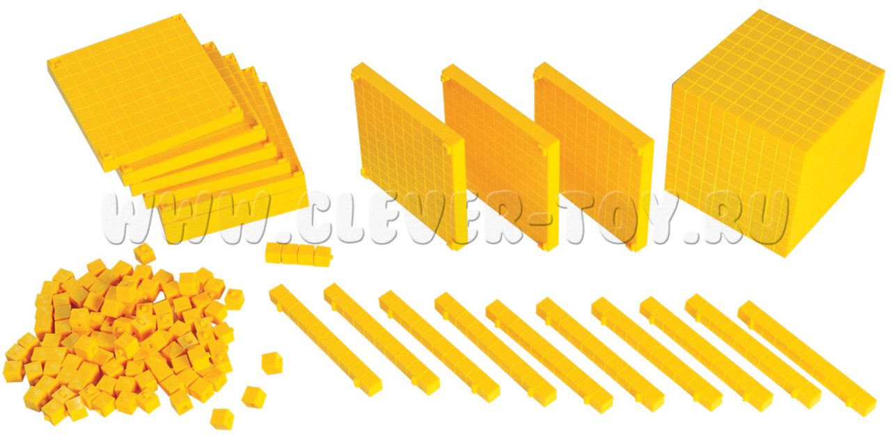 • Тысячи: Кубики по 1000 единиц демонстрируют масштаб тысячи, что значительно упрощает понимание больших чисел.