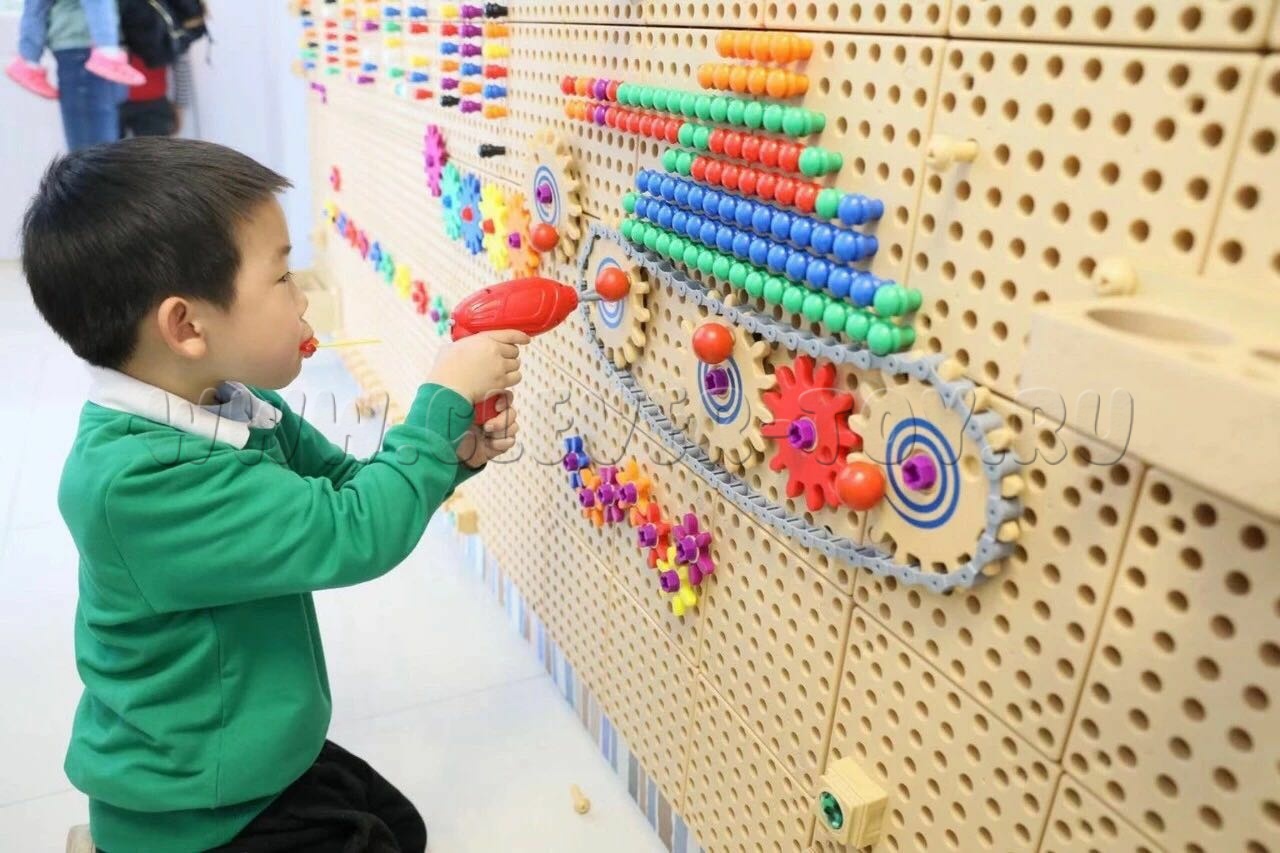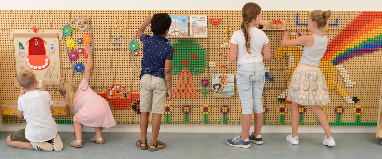 STEM-стена имеет возможность установки развивающих образовательных комплектов Masterkidz, таких как колышки, сокровища, шнуровки, винты, кинетические треки, развивающие панели и множество других интересный пособий, которые обеспечивают постоянные новые задачи и позволяют детям ежедневно получать новый опыт и совершать новые открытия. Таким образом обычная стена превращается в супер-игрушку для веселого и интерактивного обучения!